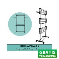 - Strong data-start="2448" data-end="2456">Merk: NICEEYa Product: Droogtoren - wasrek - droogreka Kleur: zwarta Materiaal: metaala Drooglengte: 45 metera Aantal verdiepingen: 3 met 6 plateausa Met Wielen, 4 stuks (waarvan 2 met rem)a Inclusief Haken, 4 voor kledinghangersa Afmetingen opengeklapt: 134 x 68 x 68 cma Afmetingen ingeklapt: 134 x 68 x 4 cma Productgewicht: 3,5 kga Inklapbaar, compact op te bergena Meegeleverd: Droogtoren, handleidinga EAN: 8720872930176