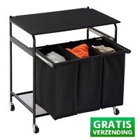 - Ta-start="3802" data-end="3822"> Merk: Niceey - Model: JLLC201 - Type: Wassorteerder - Wasmand - Waskorf - Kleermand - Bewaarplaats voor wasgoed - Inhoud: 120 liter - 3 vakken - Materiaal: metaal en stof - kleur: zwart - Bovenklep - Wielen, met rem - Afmetingen: 75 45 77 cm - EAN: 8720872930237